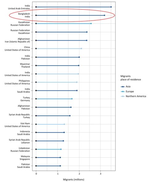 Chart of top 20 migration corridors from Asian countries