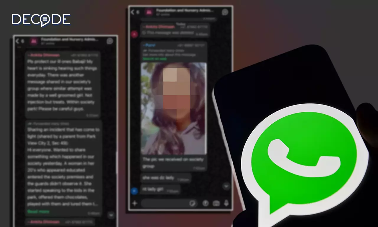 Decode has reviewed screenshots of the internal society WhatsApp group that show how the alert evolved. It began the same evening, around 10 PM, when a resident posted that her child had mentioned an unknown woman distributing chocolates in the park. Other residents quickly joined in.