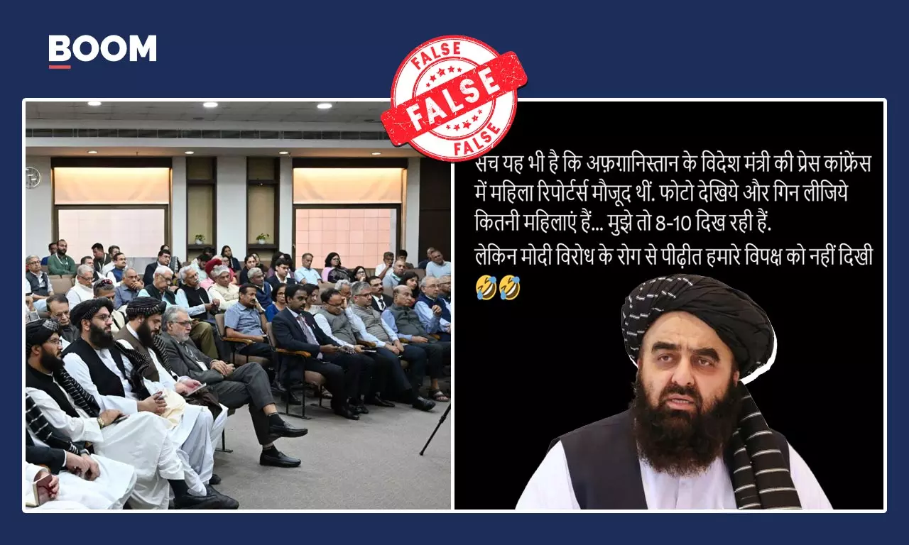 An unrelated photo of an event attended by Afghanistan's foreign minister Amir Khan Muttaqi has surfaced falsely claiming that women journalists were present in the press meet at the Afghanistan embassy in Delhi held on October 10.