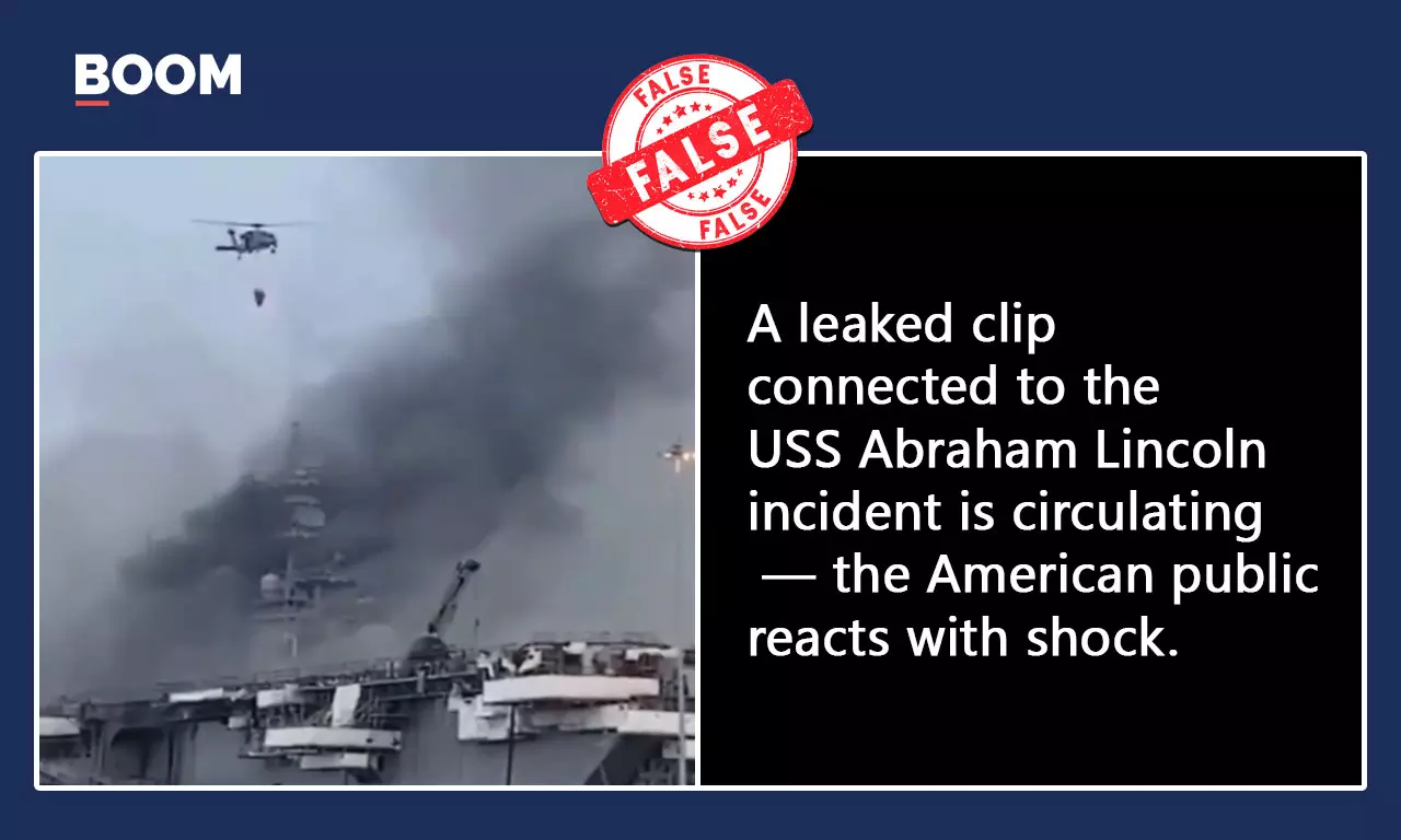 An old video showing a fire aboard the amphibious assault ship USS Bonhomme Richard is being shared on social media with the false claim that it depicts an Iranian attack on the aircraft carrier USS Abraham Lincoln.