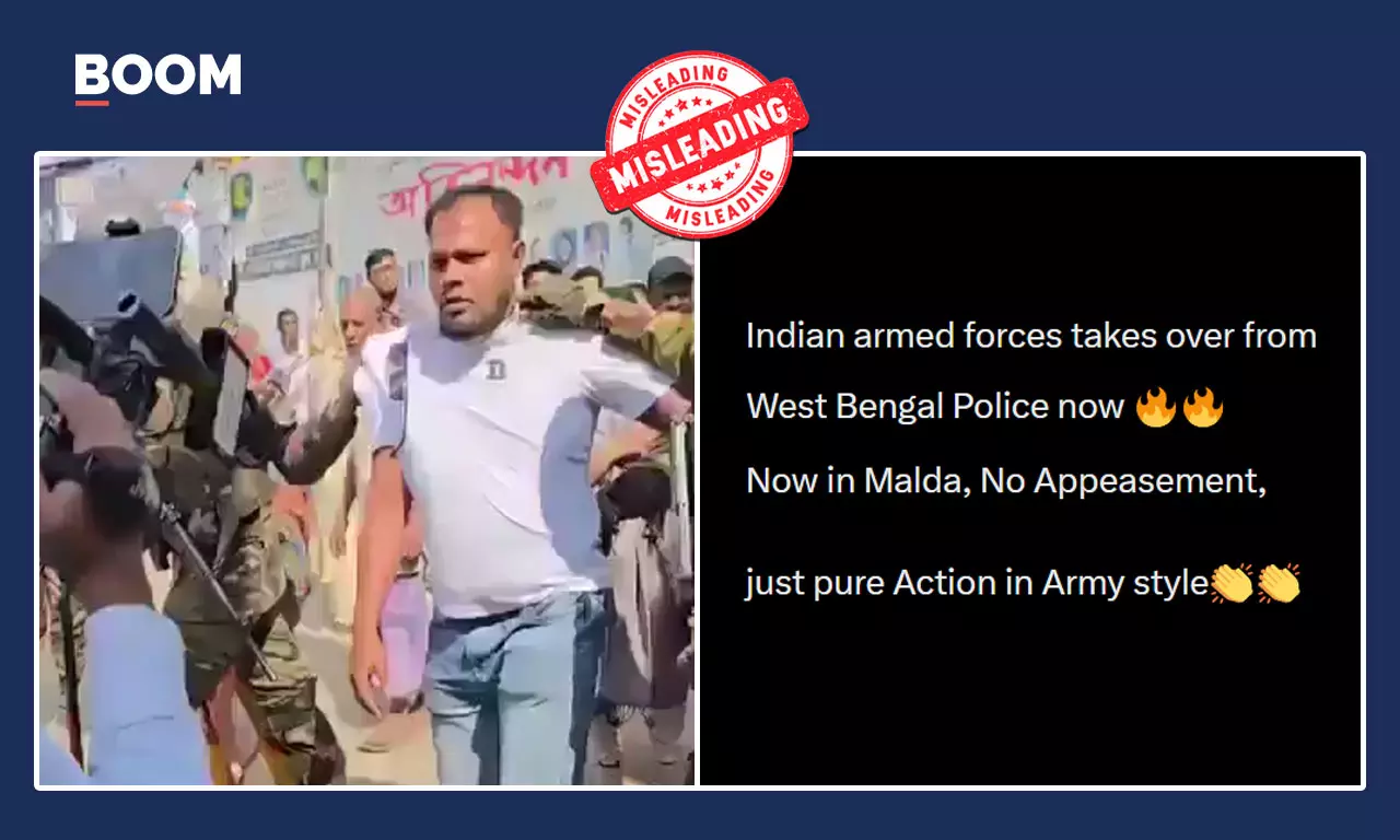 Several verified handles on X shared the video with the caption, "Indian armed forces takes over from West Bengal Police now. Now in Malda, No Appeasement, just pure Action in Army style". (sic)