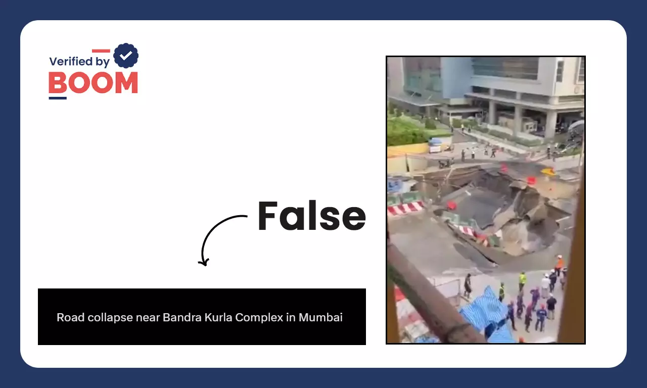 A video showing a massive sinkhole near a high-rise apartment is circulating online with the false claim that it shows a road collapse near Bandra Kurla Complex in Mumbai.