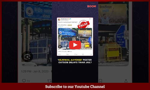 Claim: Two photos, purportedly showing a "Kejriwal Aayenge" (Kejriwal will come to power) poster in front of a prison complex, have been shared with sarcastic captions, claiming they show a campaign by the Arvind Kejriwal-led Aam Aadmi Party (AAP) outside Delhi's Tihar Jail, ahead of the assembly elections set for February 5.