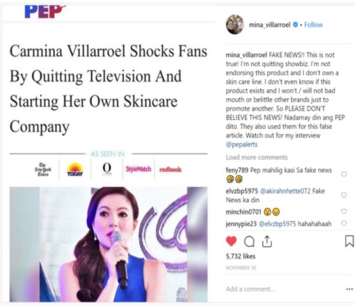 Further investigation led us to several posts which claimed an actor and model Carmina Villaroel from Phillipines had quit showbiz to launch a cosmetic brand called Auvela. Following this viral article, Villaroel took to Instagram and clarified that the article was fake.