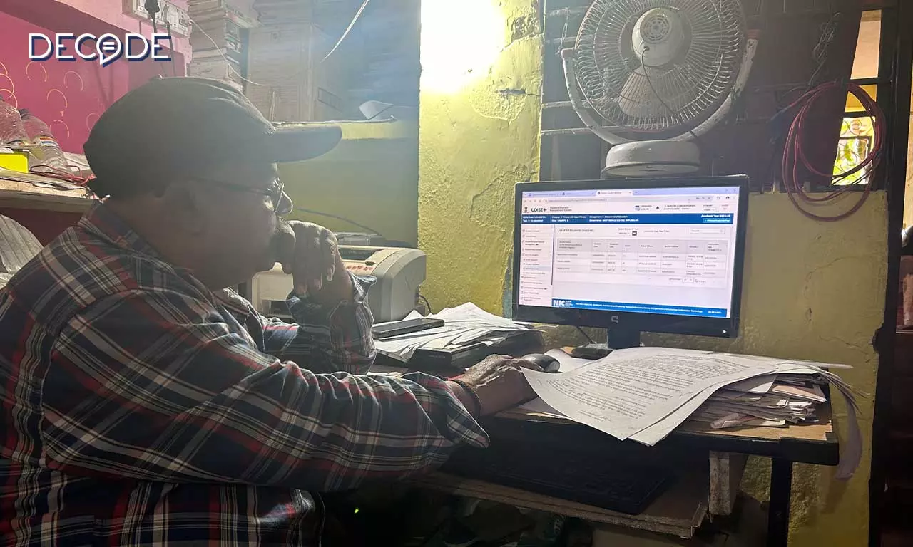Subodh, a data entry operator, explains that before 2023, the system was simpler. Then the government mandated that every student's details be entered into the central portal – 53 data fields per child.