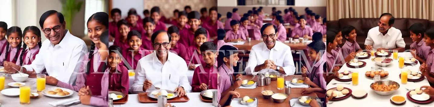 AI generated Images of K. Chandrashekhar Rao having breakfast with school children