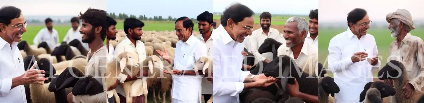 AI generated Images of K. Chandrashekhar Rao meeting with dairy farmers