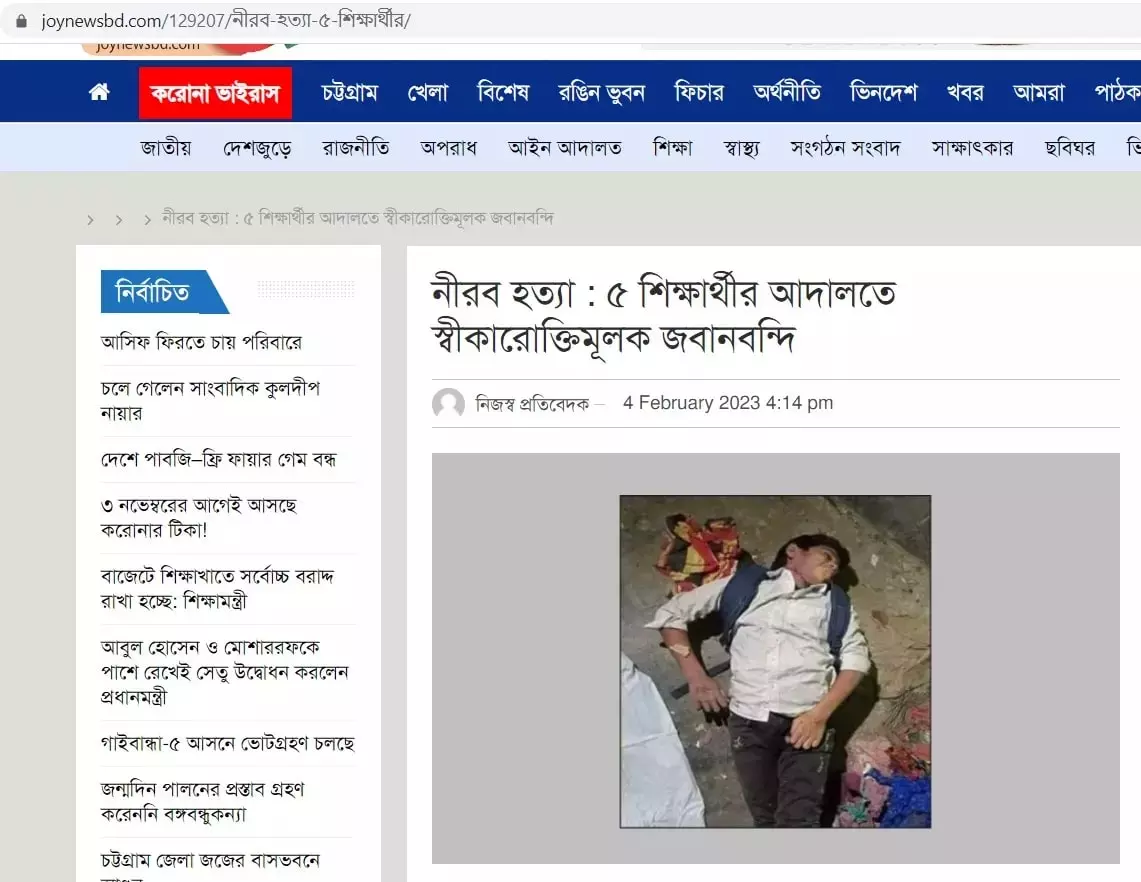We also found other Bangladeshi news articles related to the incident mentioning statements from local police officials. According to a report from Bangladesh Sangbad Sangstha, the police also recovered the body of Nirob Mondal.