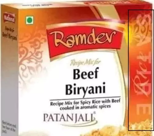 A viral image claiming to show Yoga guru Ramdev-owned Patanjali manufactures a 'beef biryani spice mix', is fake and has been created by altering the photo.