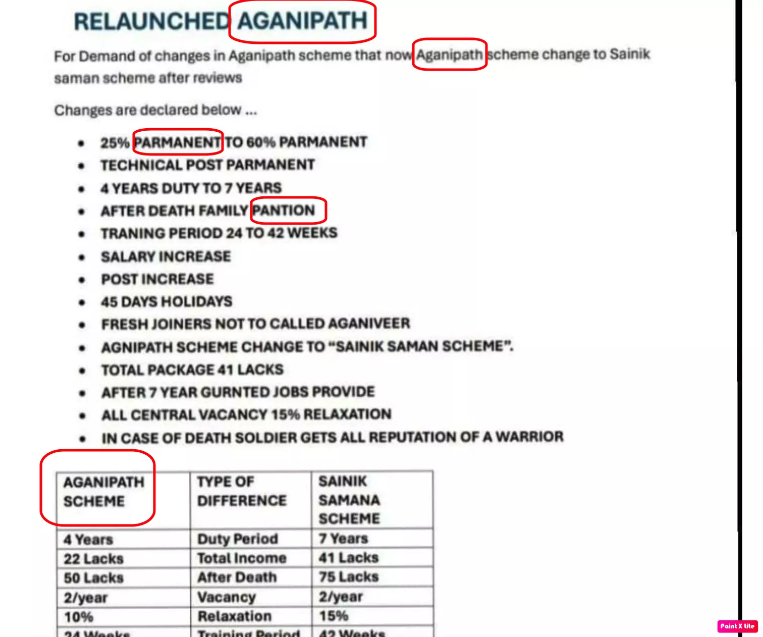 The viral document compares the Agnipath scheme with a relaunched 'Sainik Saman scheme', claiming among several other things including extension of the service period from four to seven years.