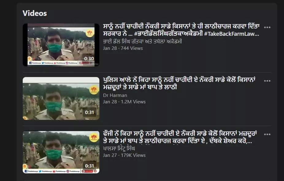 The same clip is being shared on Facebook with the caption which when translated from Punjabi reads, "We don't want jobs, the government has lathi-charged our farmers"