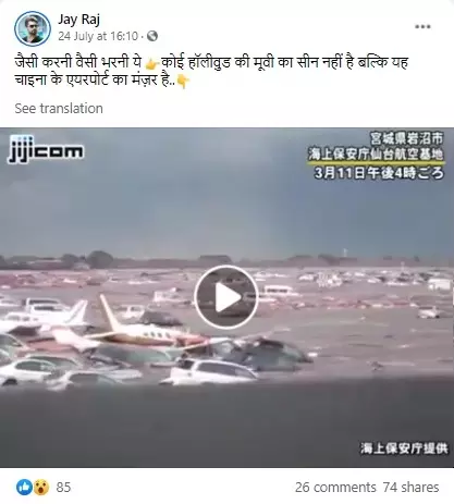 A video of a tsunami hitting an airport in Japan in 2011 is viral with claims that it shows visuals of China's devastating flood situation after heavy rains.
