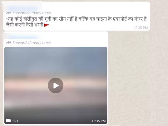 The video shows waves sweeping off cars, aircraft and helicopters parked in the hangar . The video has been shared on Facebook with captions in Hindi,"This is not a scene from a Hollywood movie, but it is a scene from China's airport." (Original text in Hindi: जैसी करनी वैसी भरनी ये। कोई हॉलीवुड की मूवी का सीन नहीं है बल्कि यह चाइना के एयरपोर्ट का मंज़र है)