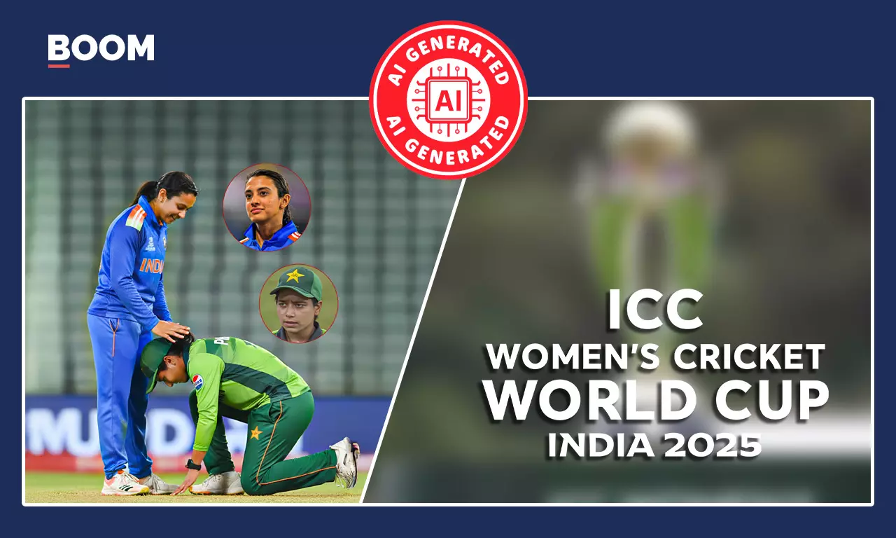 A viral photo claiming to show Pakistani Women’s cricket team captain Fatima Sana kneeling and touching the feet of Indian cricketer Smriti Mandhana during the India vs Pakistan match at the ICC Women’s World Cup on October 5, 2025, is AI-generated.