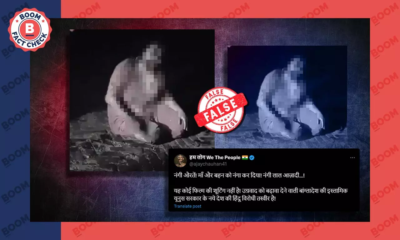 The viral video was shared on X with a Hindi caption that translates to: Naked women! Mother and sister stripped naked! Naked red freedom...!This is not a film shoot! This is an anti-Hindu picture of the new country of the Islamic Yunus government of Bangladesh which promotes extremism!