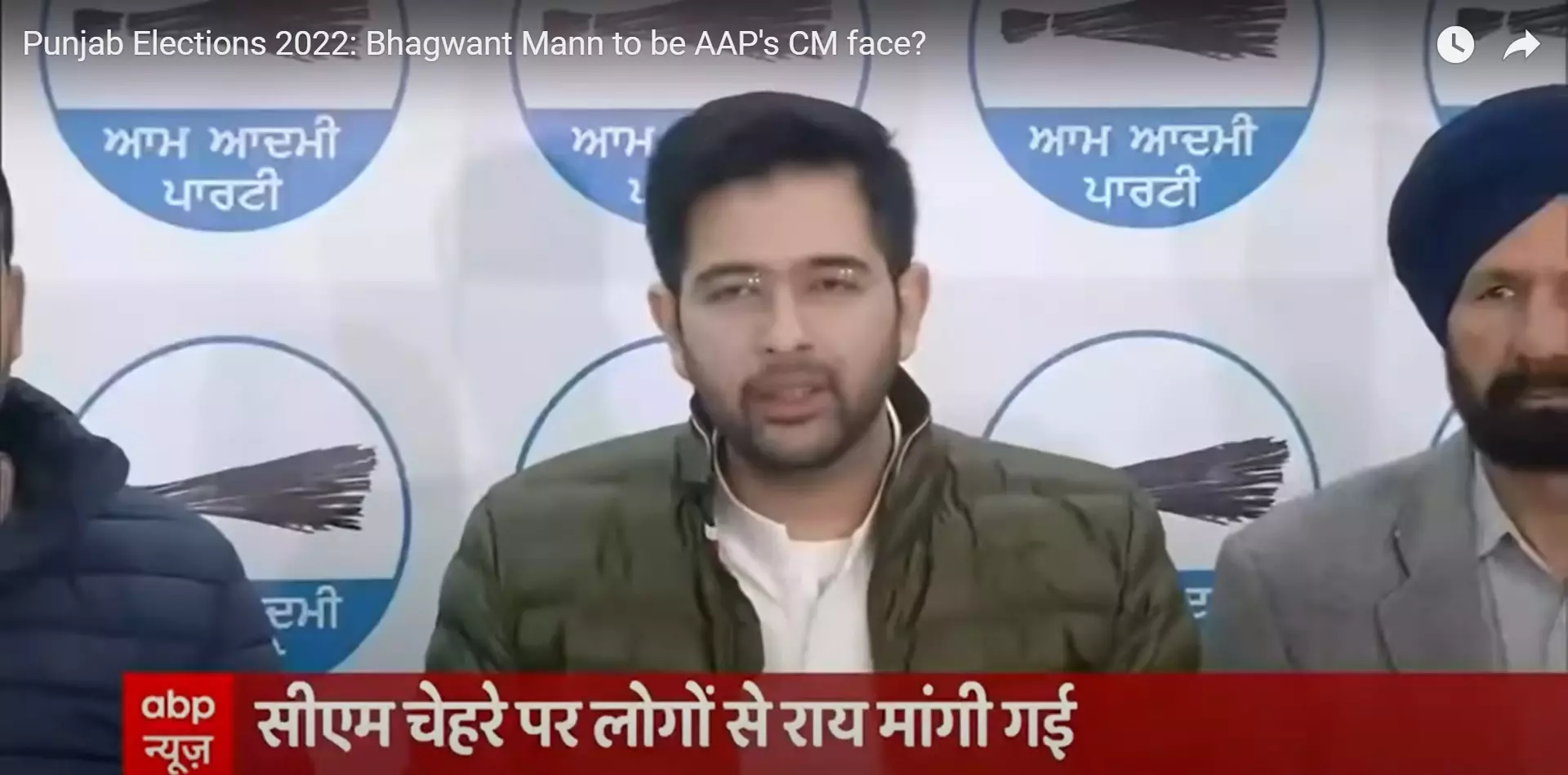 A look at the graphic showed that the style resembled news shows on news channel ABP. We went through various uploads by the channel where Chadha can be seen addressing the press and found a show from January 18, 2022 about whether Bhagwant Mann would the chief ministerial candidate for AAP in Punjab.
