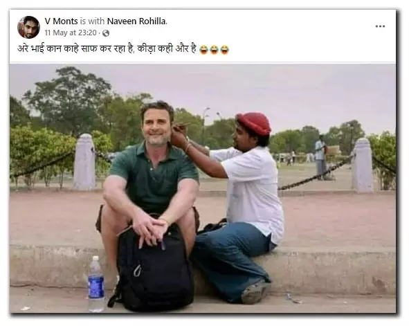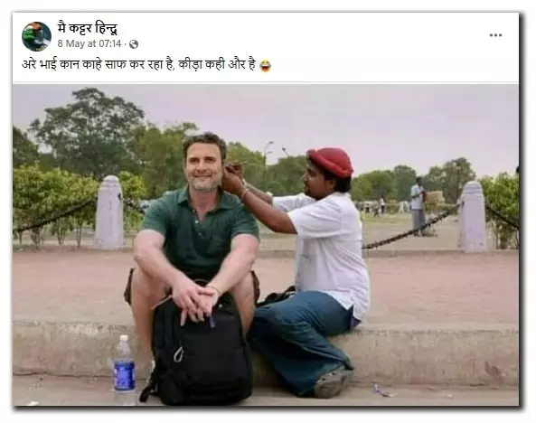 A picture purportedly showing former Congress president Rahul Gandhi getting his ear cleaned sitting in a park, is being shared widely on social media with false claims.