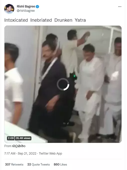 Rishi Bagree tweeted the viral video with the caption, "Intoxicated Inebriated Drunken Yatra". BOOM has previously debunked misinformation tweeted by Bagree.