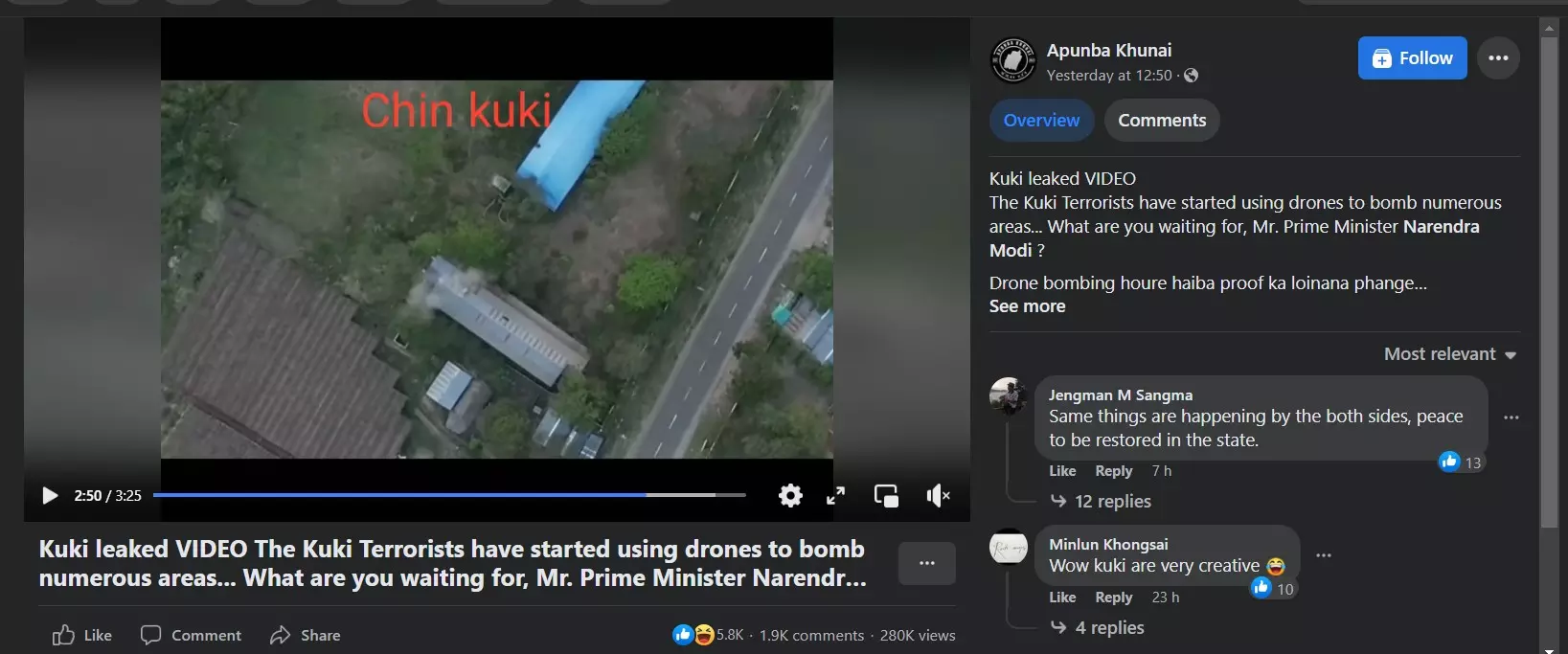 The video is being shared with the caption, "Kuki leaked VIDEO The Kuki Terrorists have started using drones to bomb numerous areas... What are you waiting for, Mr. Prime Minister Narendra Modi ? Drone bombing houre haiba proof ka loinana phange"