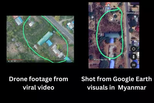 A comparison of the structures seen in the viral video match with the structures seen in War Tan village in Myanmar on Google Earth.