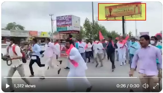 We found several signboards in Telugu and a hoarding with the image and name of Telangana Chief Minster K Chandrasekhar Rao at various points in the video. Also, the other group of people can be seen wearing pink scarves. Pink is the colour on the flag of Telanagna Rashtra Samithi (TRS), the ruling party in the state.