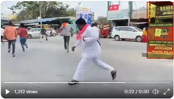 The 30-second-long video shows people wearing BJP party flag scarves being chased and beaten up by a group of people on the middle of the road. The perpetrators are wearing pink scarves and holding pink flags.