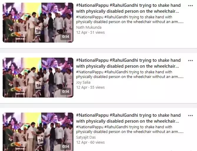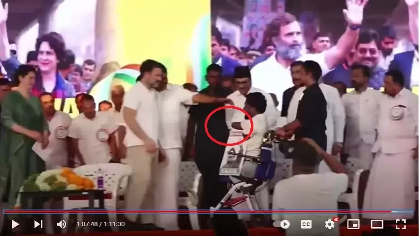 A video of Rahul Gandhi trying to shake hands with a wheelchair bound person with disabilities is being shared online with misleading claims accusing him of being insensitive towards the man's disability and trying to shake hands with him despite him not having hands.