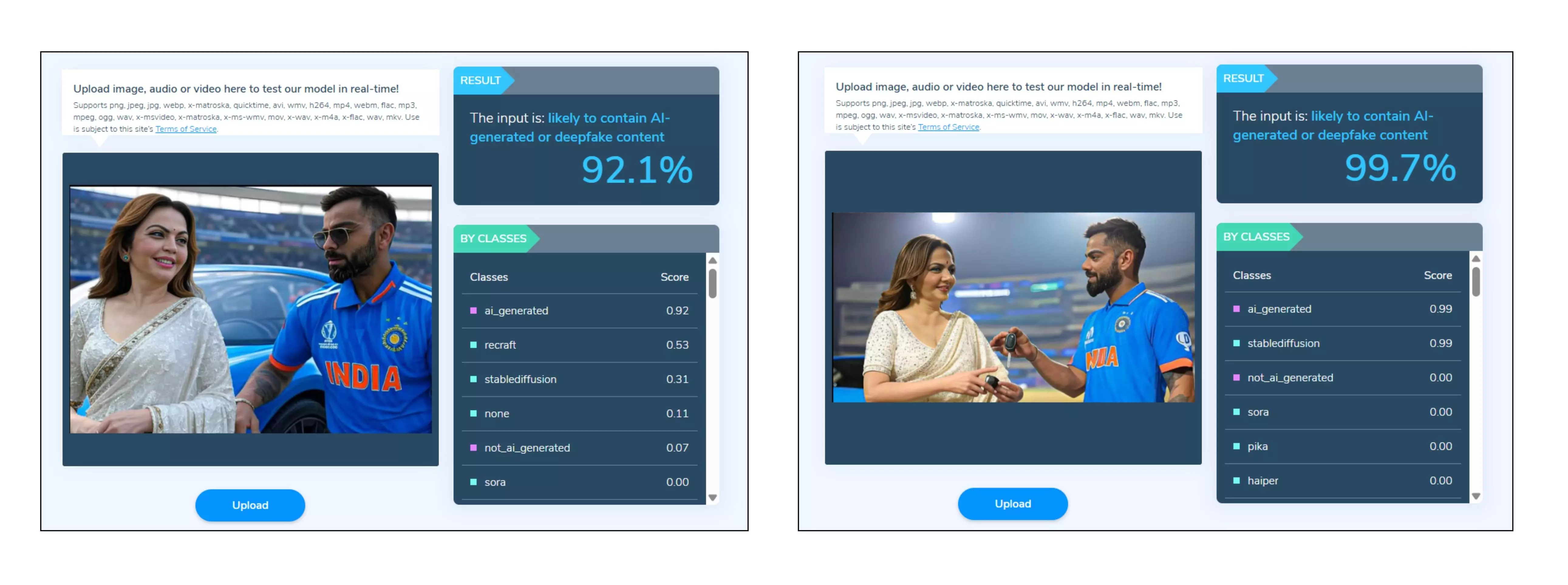 We tested the photos separately on AI detector tools like Hive Moderation and Was It AI and both tools confirmed them to be made with artificial intelligence. The results provided by the tools can be seen below.