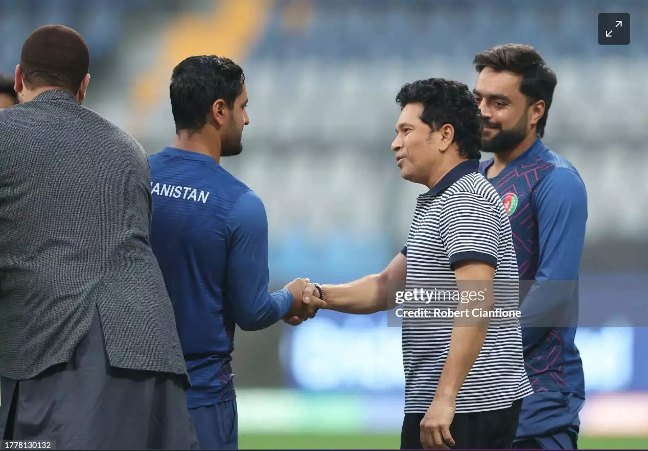 In the original photo Tendulkar was shaking hands with a member of the Afghan cricket team, during his interaction with them ahead of the match against Australia.