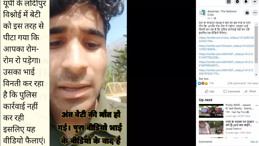 PRO of IG, Moradabad told BOOM that the viral video shows two different incidents. "The viral video of the man is not related to the other video which shows a woman being attacked. Moradabad police has filed a report in the second case. The sister of the man recording the other video was killed. The incident is from June and two people have already been arrested in the case. If there are other people involved in the case, they will be arrested too," the PRO told BOOM.
