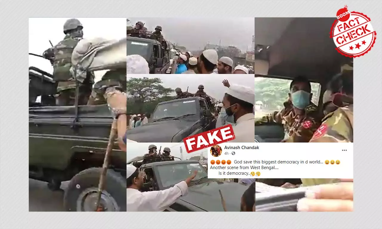A video of protesters stopping an armed forces' vehicle in Bangladesh's Hathazari, post the protests against Prime Minister Narendra Modi's visit, is being shared with a false claim that the incident is from West Bengal where currently polls are being held.