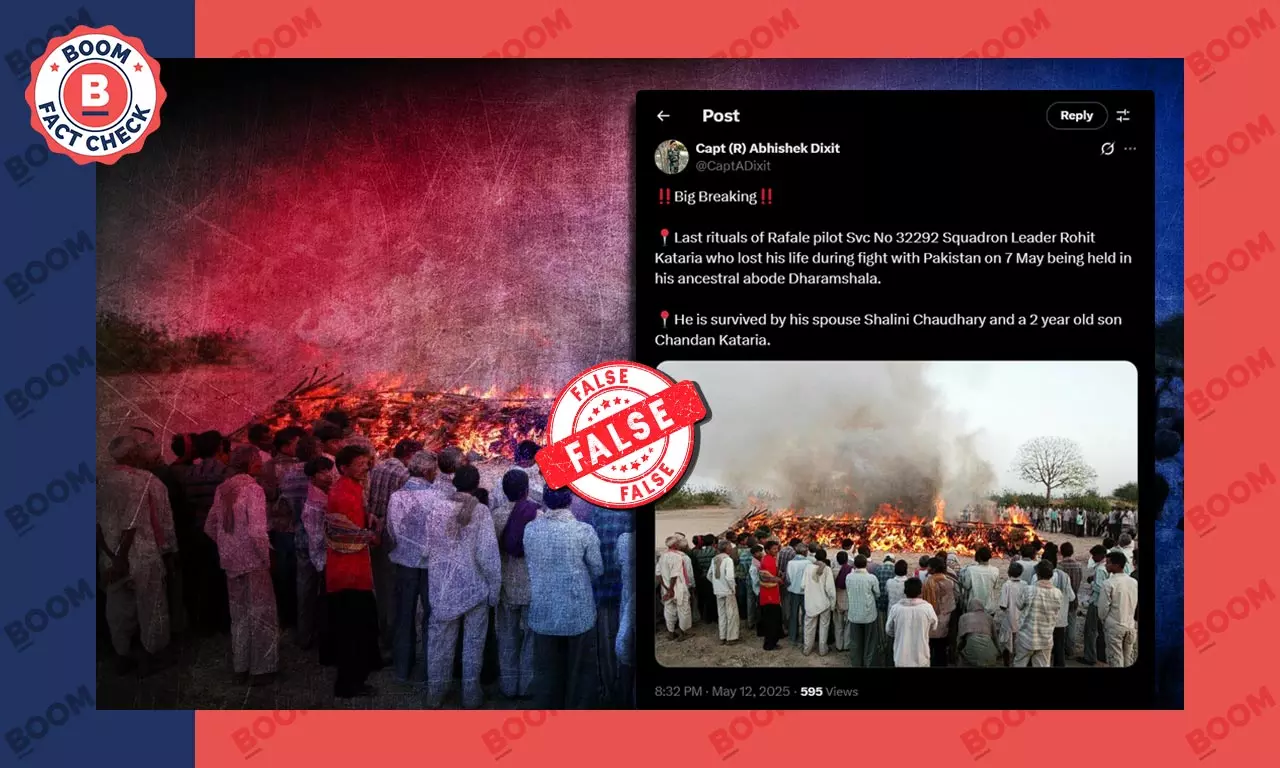 An old photograph of a mass cremation is being circulated on social media with a false claim that it shows the funeral of Indian Air Force (IAF) pilot Rohit Kataria, who reportedly died on May 7, 2025, during Operation Sindoor.