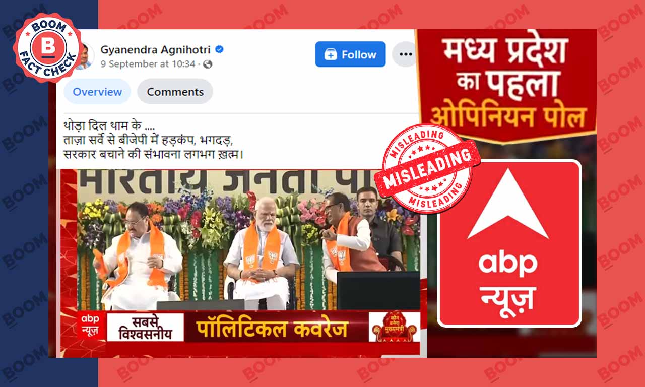 A morphed version of an ABP News opinion poll has been shared on social media with a misleading claim that the ruling Bharatiya Janata Party (BJP) in Madhya Pradesh will be in a closer-than-expected contest against the opposition Congress in the state's upcoming assembly election.