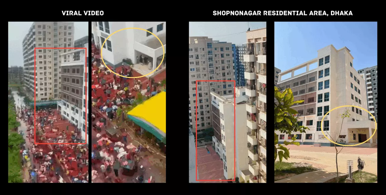 We then observed that the buildings in the video resemble residential complexes in Dhaka, Bangladesh.