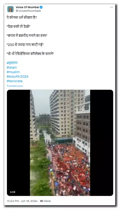 A viral video showing visuals of cattle slaughter inside a residential complex in Bangladesh is being shared by Indian social media users falsely claiming that it captures Bakrid celebrations this year in West Bengal.