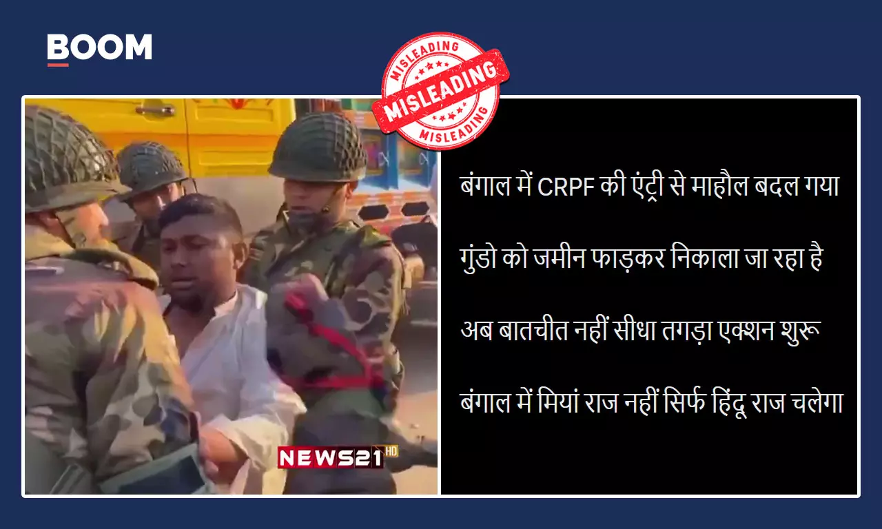 The video was shared with a Hindi caption that translates to, "The atmosphere has changed with the entry of CRPF in Bengal. The goons are being dug out from the ground. No more talks, straight-up tough action has begun. In Bengal, no more Bhai rule, only Hindu rule will prevail."