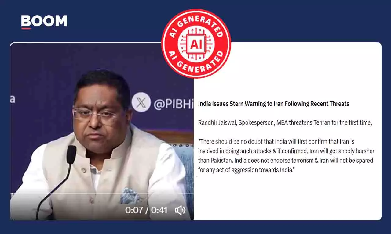 A video purportedly showing External Affairs Ministry (MEA) spokesperson Randhir Jaiswal saying India supports Israel and threatening Iran over an attack on an India-bound commercial ship is a digitally altered deepfake.