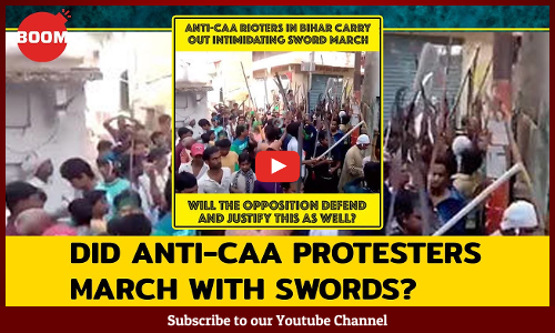 Facebook page Nation With Namo shared a video and passed it off as anti-Citizenship Amendment Act protesters carrying out an 'intimidating sword march' in Bihar. But the claim is false as BOOM found out. Watch this episode of Fact Vs Fiction to know the truth!