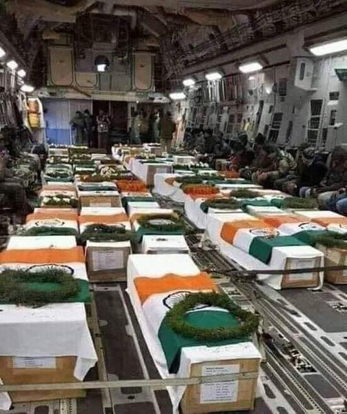 A photo from 2019 showing coffins wrapped in the Indian tricoloured flag being transported in an aircraft is being shared with false claims as from the recent clashes between India and China in Galwan valley, Ladakh.