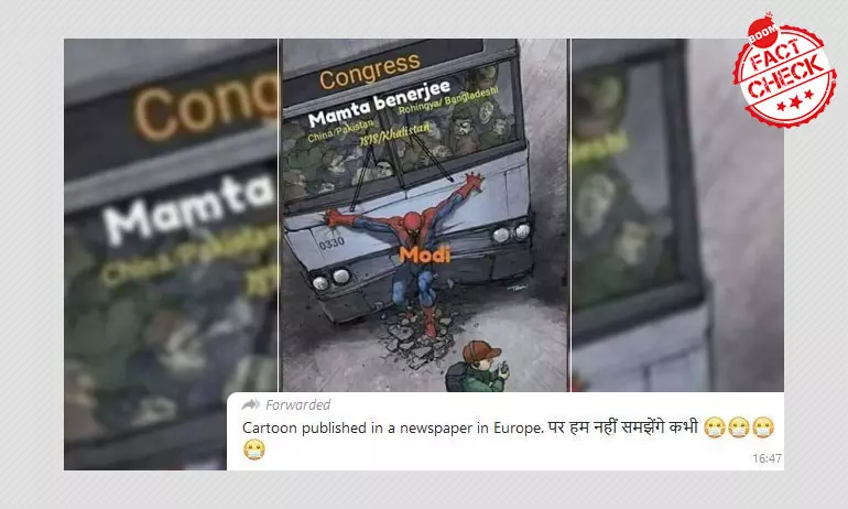 At first glance, one can note that the spelling of 'Mamta Bannerjee' is incorrect on the cartoon, spelling it as 'Mamta Benerje'. On performing a Google reverse image search, using relevant keywords such as 'Modi', 'BJP' and 'European', BOOM found replies with this the image to publications such as ANI and to Mahesh Vikram Hegde of PostCard News, with the same cartoon on December 20 and December 21.