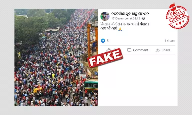 An image of a public meeting organised by the Communist Party of India (CPIM) in West Bengal last year has resurfaced with claims that it shows people in Kolkata pouring in to show support to the protesting farmers in Delhi borders.