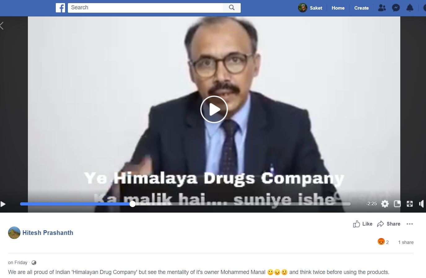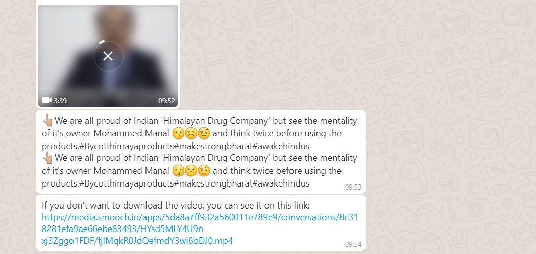 The video is viral on social media with a caption reading 'We are all proud of Indian 'Himalayan Drug Company' but see the mentality of it's owner Mohammed Manal and think twice before using the products.#Bycotthimayaproducts#makestrongbharat#awakehindus'.