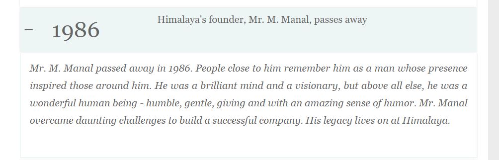 In the course of earlier fact checks we found that Mohammed Manal, Himalaya's founder, had passed away in 1986, according to the information on the company's website.
