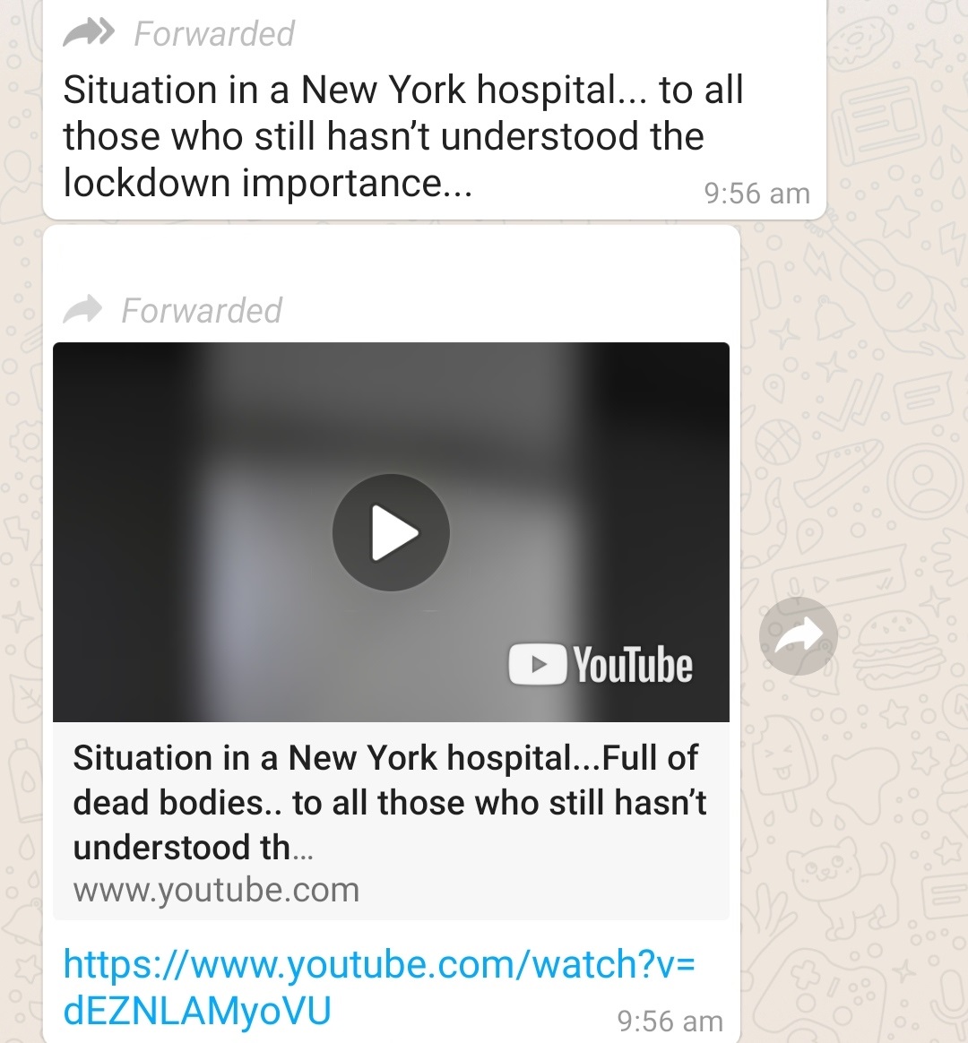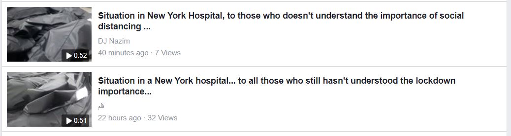 The disturbing clip is being shared with the caption, "Situation in a New York hospital...Full of dead bodies.. to all those who still haven't understood the lockdown importance."