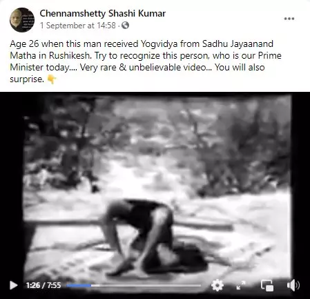 An old video of late yoga guru BKS Iyengar practicing yoga is viral with a false claim that it shows Prime Minister Narendra Modi at a young age. The video is viral on Facebook and WhatsApp with a caption that reads, “Age 26 when this man received Yogvidya from Sadhu Jayaanand Matha in Rushikesh. Try to recognize this person, who is our Prime Minister today.... Very rare & unbelievable video... You will also surprise.” BOOM also received the video via its WhatsApp helpline for verification.