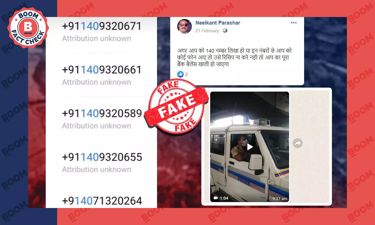 Videos show police warning people not to answer calls from phone numbers beginning with '140' otherwise their bank account will get hacked.