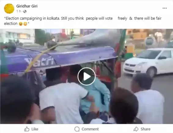 An old video showing Bharatiya Janata Party (BJP) supporters being trashed by a group of people has resurfaced on social media falsely linking it to the ongoing campaign for the upcoming Loksabha Elections, 2024. The video is circulating on Facebook with the caption, “Election campaigning in Kolkata. Still, you think people will vote freely & there will be a fair election”. Click here to view the archive of one such post. BOOM also received the video on its WhatsApp Tipline number 7700906588 for verification.