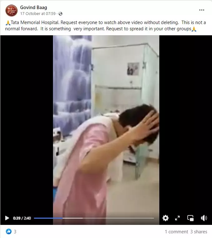 A video of a Hyderabad based alternative medicine practitioner performing tapping exercises and advising the benefits of the same is viral with a false claim that Tata Memorial Hospital in Mumbai is advocating it. The 2.40 minutes video has been captioned on Facebook as, “Tata Memorial Hospital. Request everyone to watch above video without deleting. This is not a normal forward. It is something very important. Request to spread it in your other groups.”