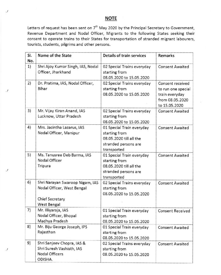 The Karnataka government has decided to restart train services for migrant workers after facing flak for discontinuing the services according to The Quint. The B.S. Yediyurappa government had decided to cancel services after meeting with property developers and deciding that migrant workers will be crucial in restarting the economy once the lockdown is lifted. The government has sent letters of request on Thursday to several states asking their consent to operate trains for migrant workers.
