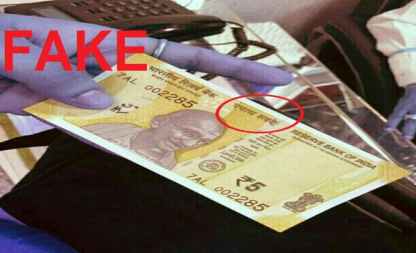 A poorly photoshopped picture claiming to show a new design of a five-rupee currency note has gone viral on social media.